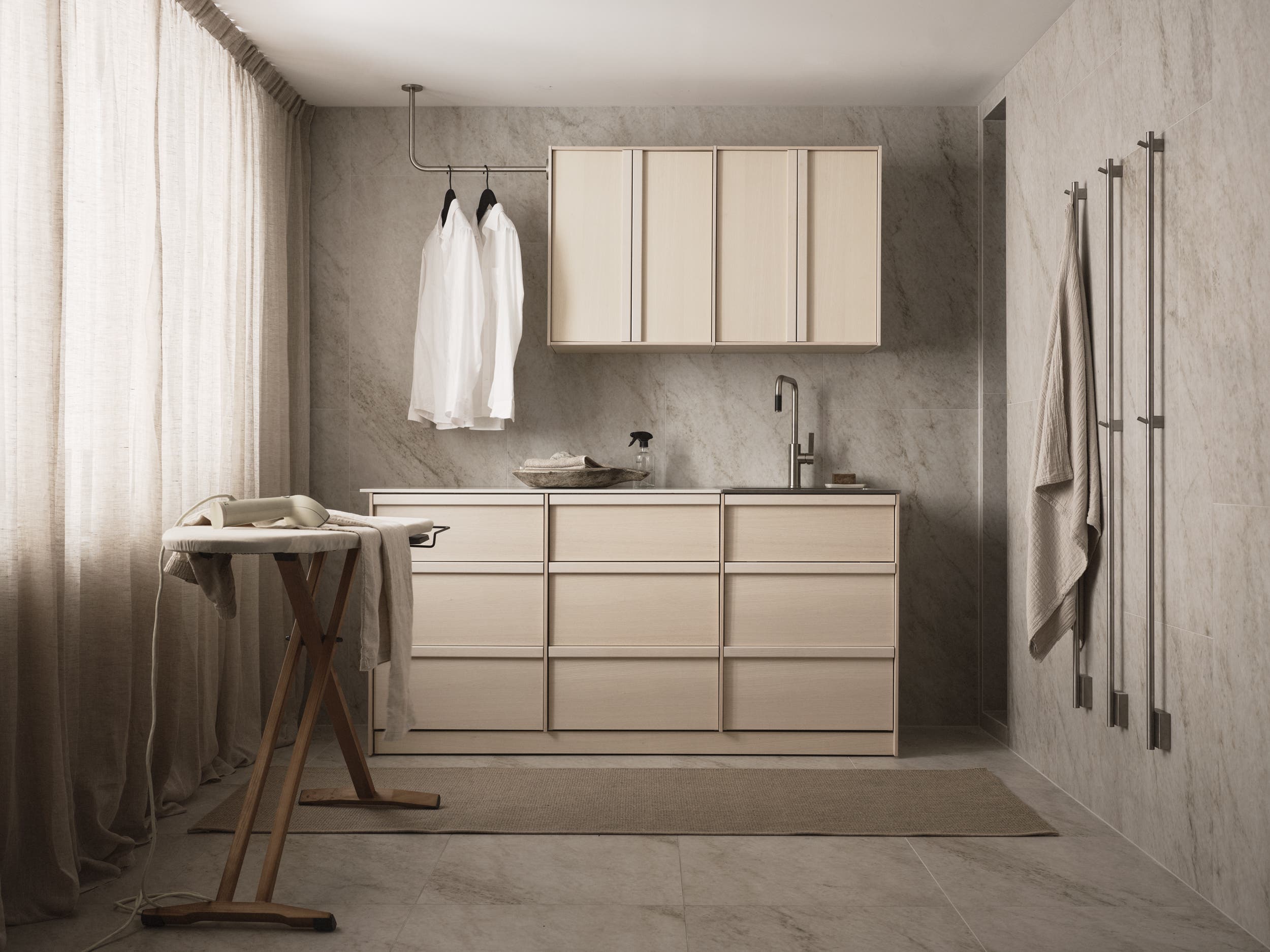 1 stk underskap H2/UC60‑Laundry, Light Ash Wood med to lange dekkplater.