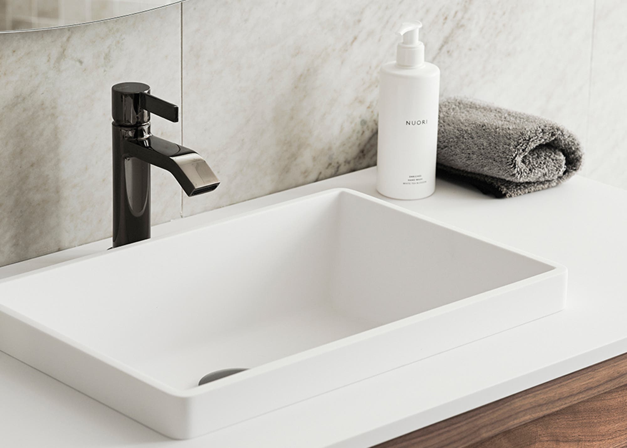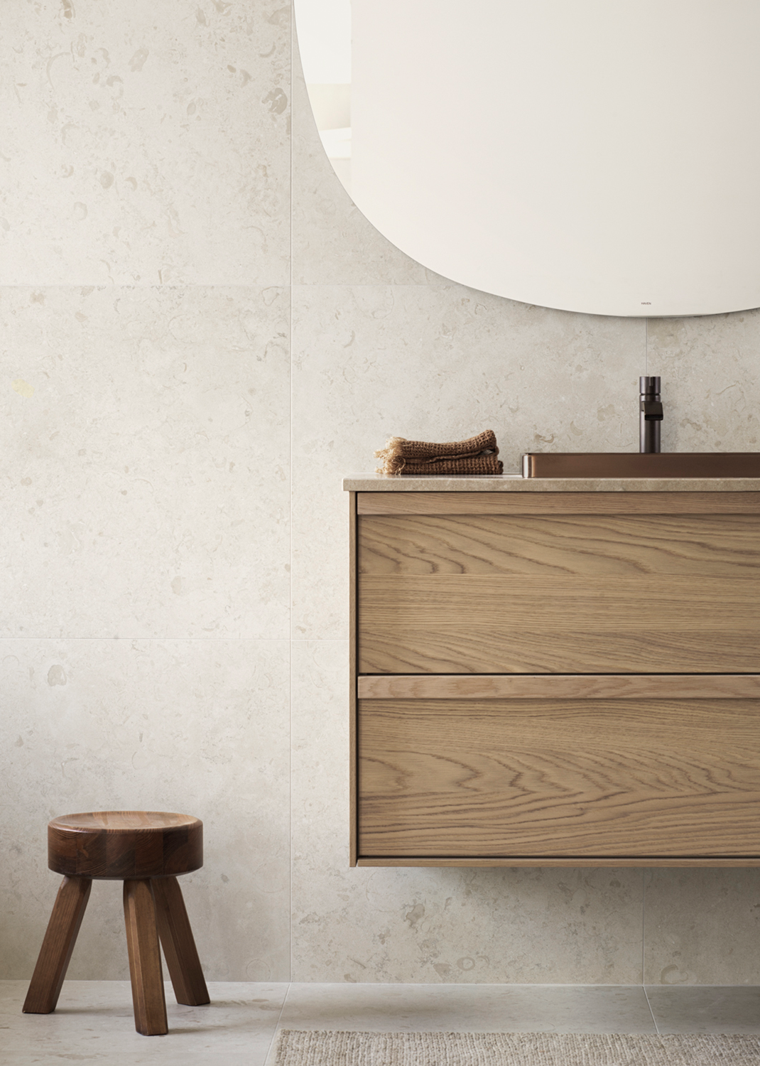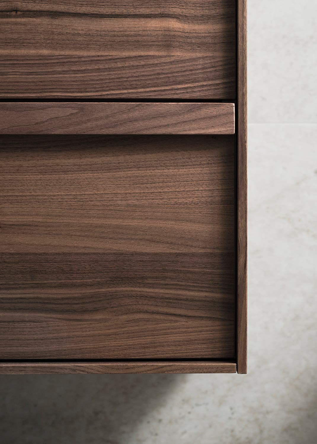 Tradisjonelt håndverk møter moderne behov. H2 kombinerer rene linjer med ekte treverk og har et grep i massivt tre eller ekte finer, samt utskiftbare sider og fronter. Velg mellom White Wood, Dark Wood, Oak Wood, Walnut Wood, Smoked Oak Wood eller Light Ash Wood. Alltid i ekte tre, med miljøvennlig overflatebehandling. Velg mellom porselen, granittkeramikk eller solid surface som topp på møbelet.
