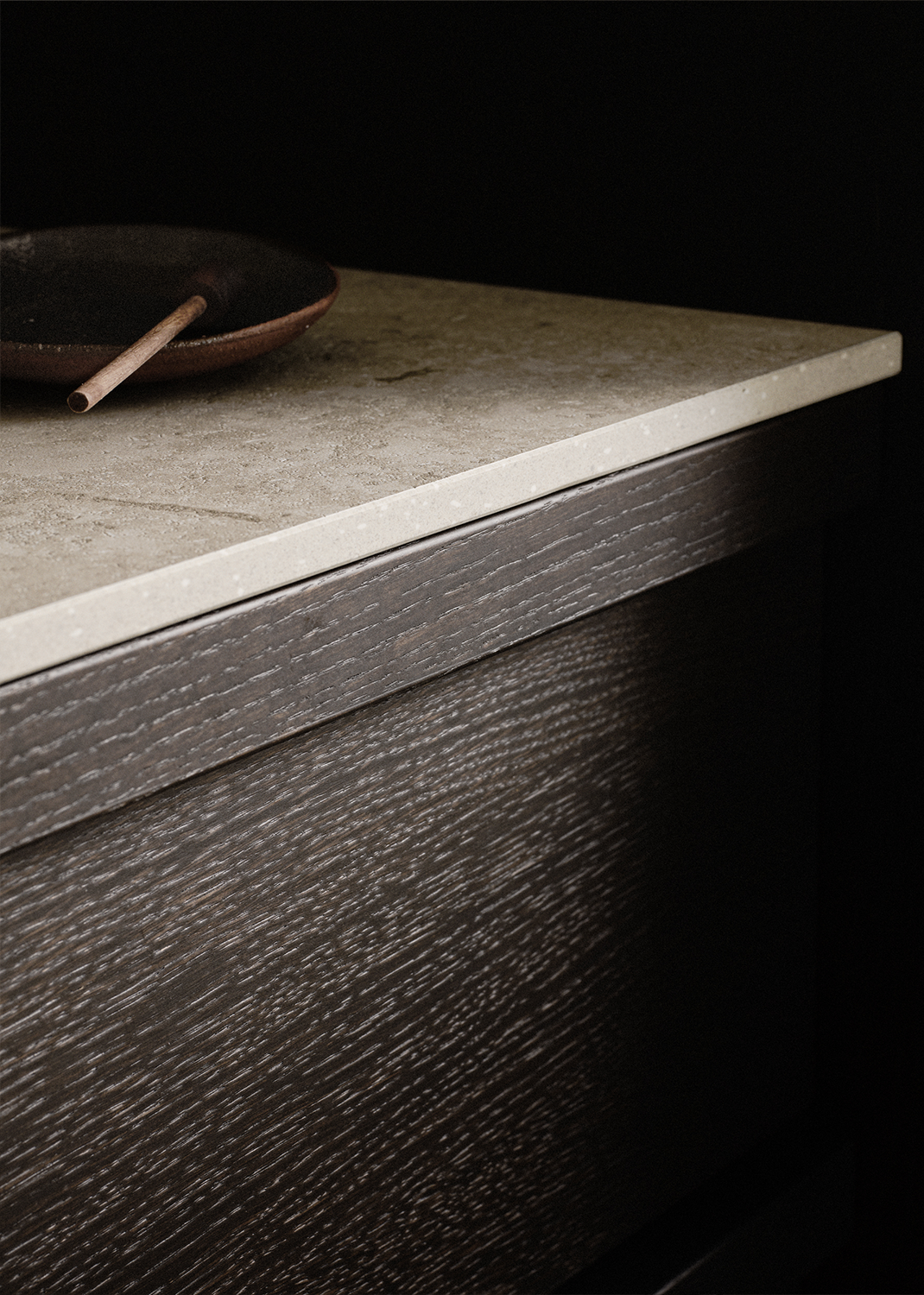 Hos HAVEN har vi respekt for tre og de mulighetene materialet gir. Vi vet hvilken kvalitet som passer best til ulike komponenter og hvordan tre skal behandles for å få riktig glans og følelse. Vi jobber med finér av høyeste klasse på glatte, lette overflater, og med massivt tre eller ekte finer i grepslister og andre detaljer der det er mer hensiktsmessig. Vi har overflater laget av blant annet valnøtt, eik og ask, som alle gir forskjellig følelse. I vårt sortiment finnes både ubehandlede tresorter samt en hel palett av ulike behandlinger, fra den lyse Light Ash Wood til den mørke Smoked Oak Wood og nesten sorte Dark Wood. Vi tilbyr også et antall nøye utvalgte farger for lakkerte overflater.