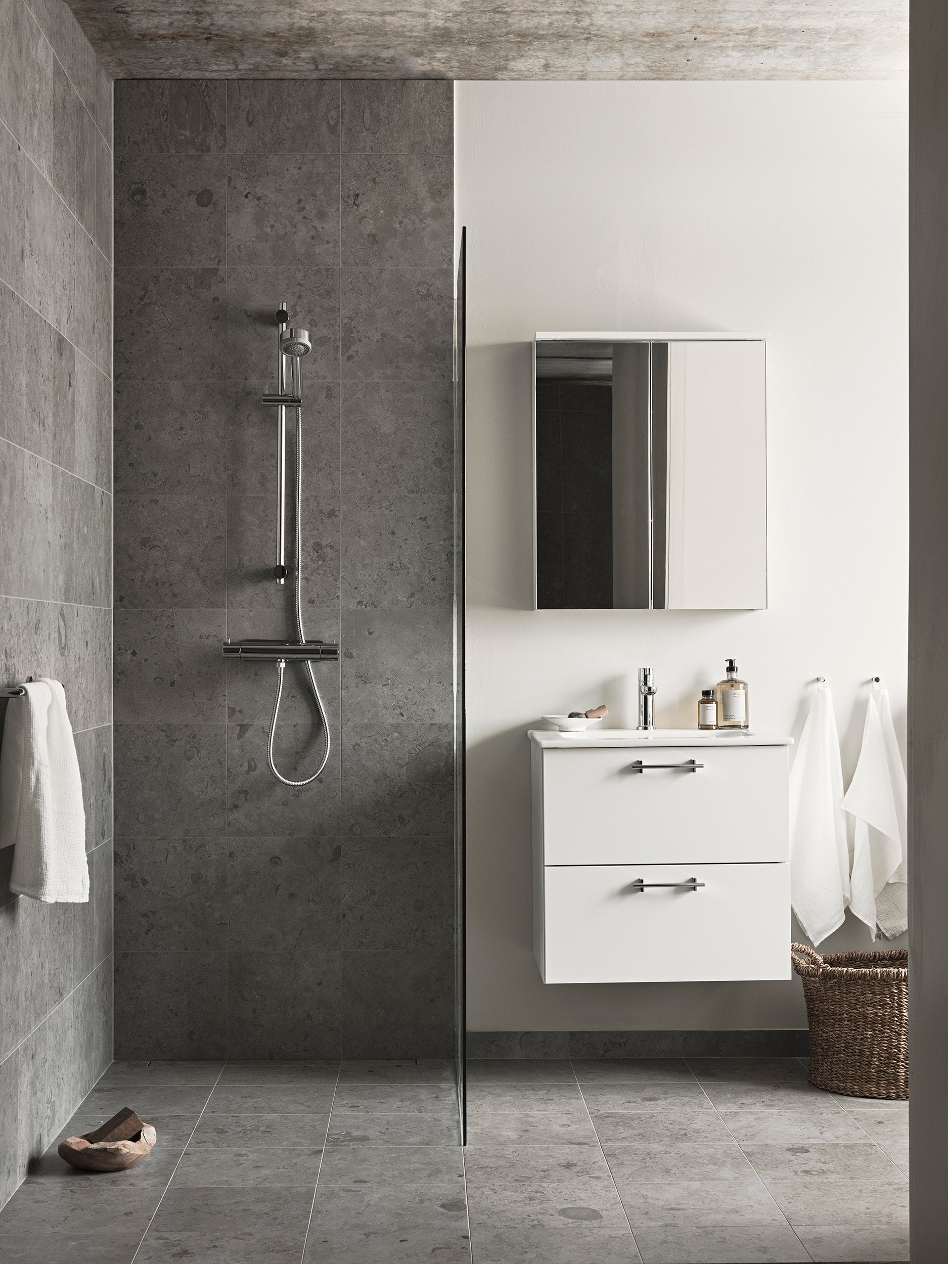 Det er ingen snarveier til kvalitet – alle komponenter er like viktige for å skape et solid helhetsinntrykk. Våre produkter har utskiftbare dekksider, slik at du ikke trenger å bytte ut hele møblet dersom en side eller en dør har blitt skadet. Det betyr også at du kan endre utseendet på baderomsmøblene uten å måtte bytte det ut. Våre uttakbare skuffeinnsatser er laget av 100 % biologisk nedbrytbart materiale bestående av vegetabilsk stivelse forsterket med bambusfibre. Dette betyr at boksen er biologisk nedbrytbar når den har tjent sitt formål.