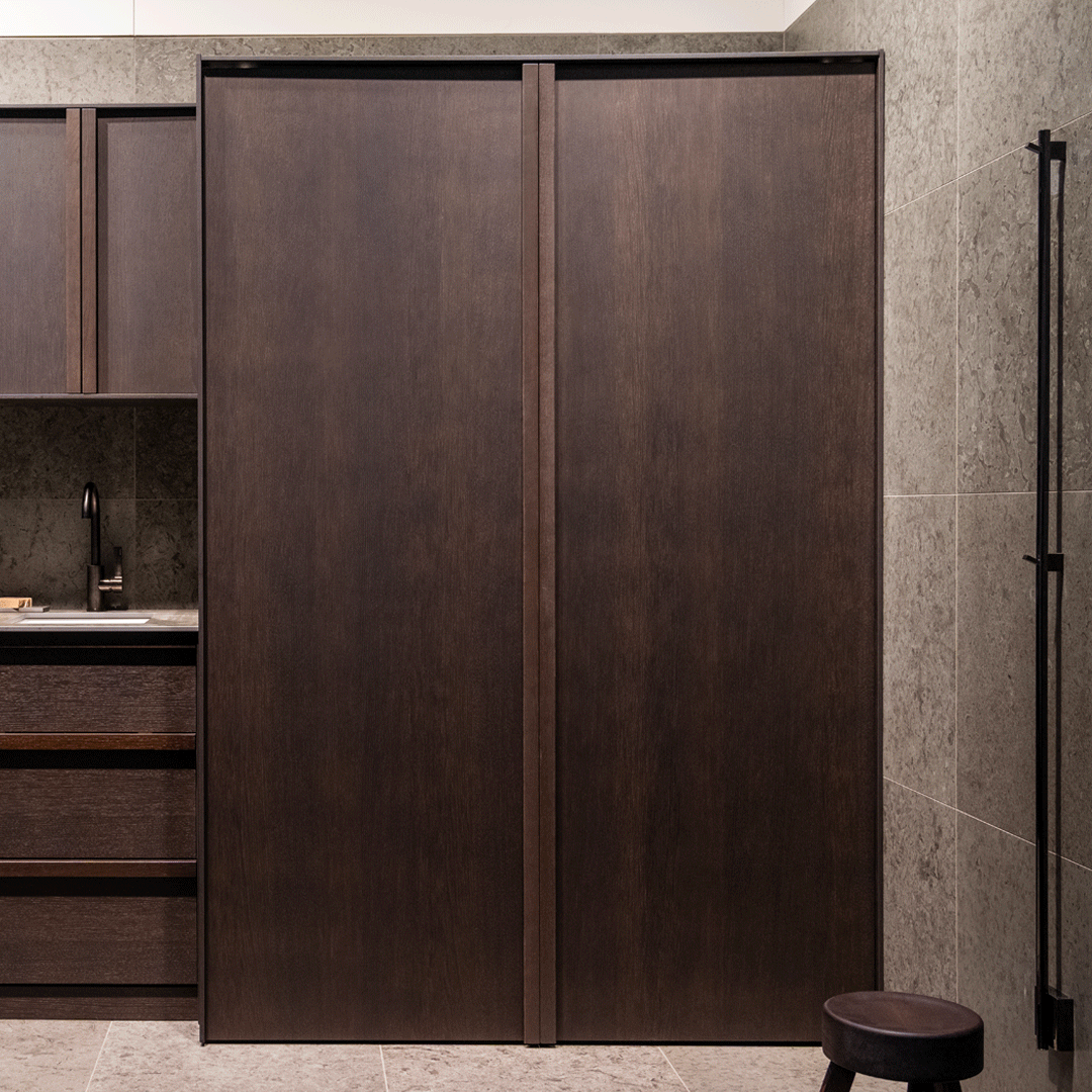 H2C146 Pocket Smoked Oak Wood H2 Laundry Cabinet